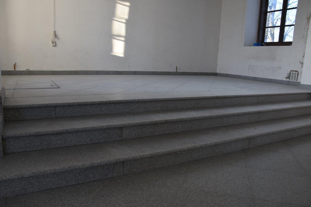 W ramach projektu została wykonana posadzka z kamienia naturalnego – granitu wraz z cokolikami, progami, obłożeniem schodów.